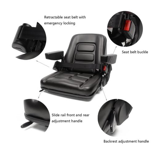 Aftermarket Universal Adjustable Forklift Seat with Safety Belt, Full Suspension Seat with foldable