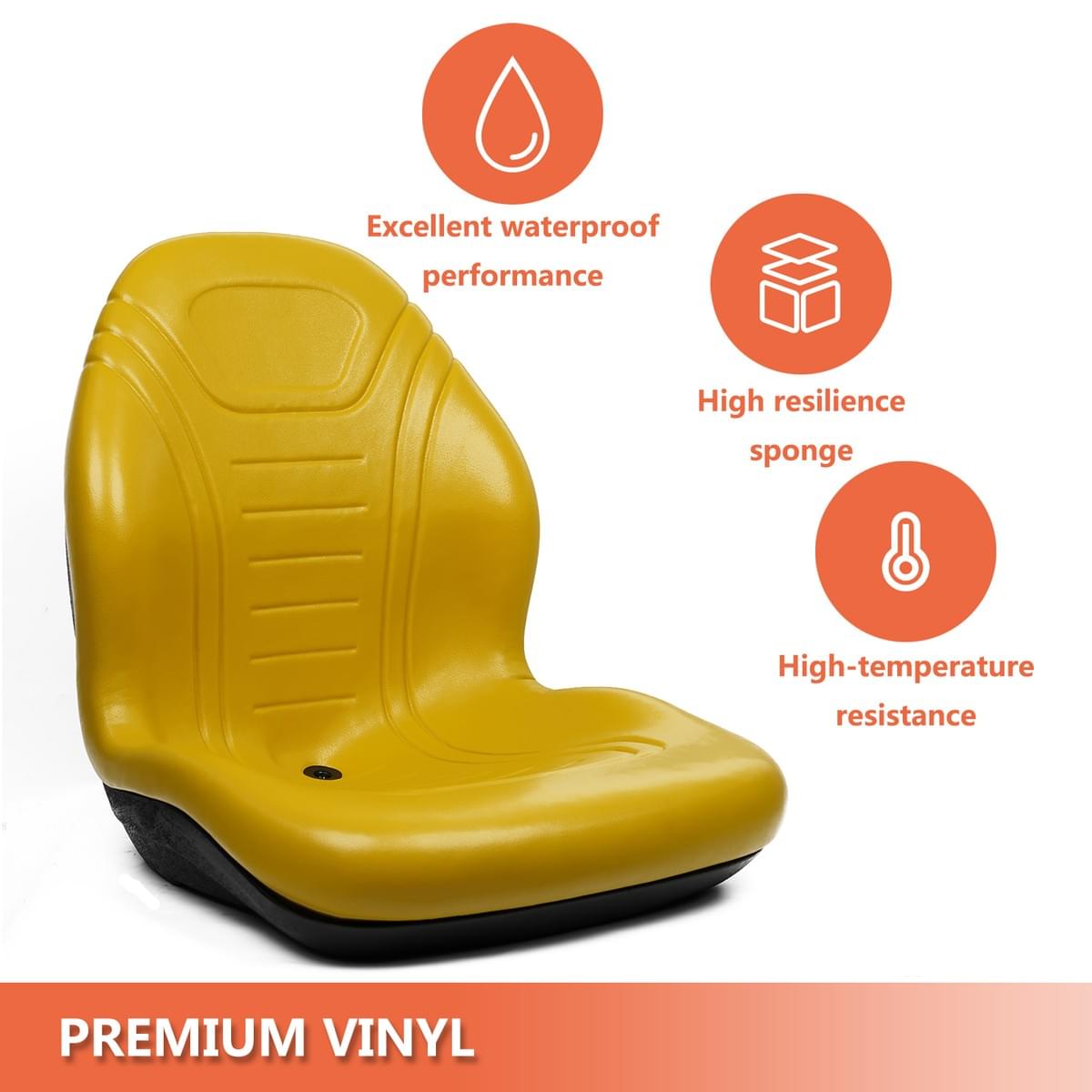 Yellow High Back Vinyl Universal Mount Lawn Mower Garden Tractor UTV / ATV Seat